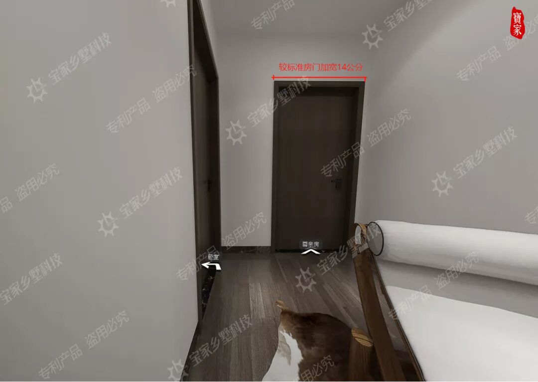宝家特将尊亲房门及套内卫生间门,较标准尺寸加宽14公分(已经接近小区过道宽度),使得回旋转动空间更宽松。
