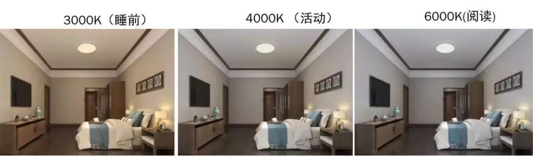 (睡前可调整为3000k暖色调,一般活动时可调整为4000k,读书看报时调整到6000k)
