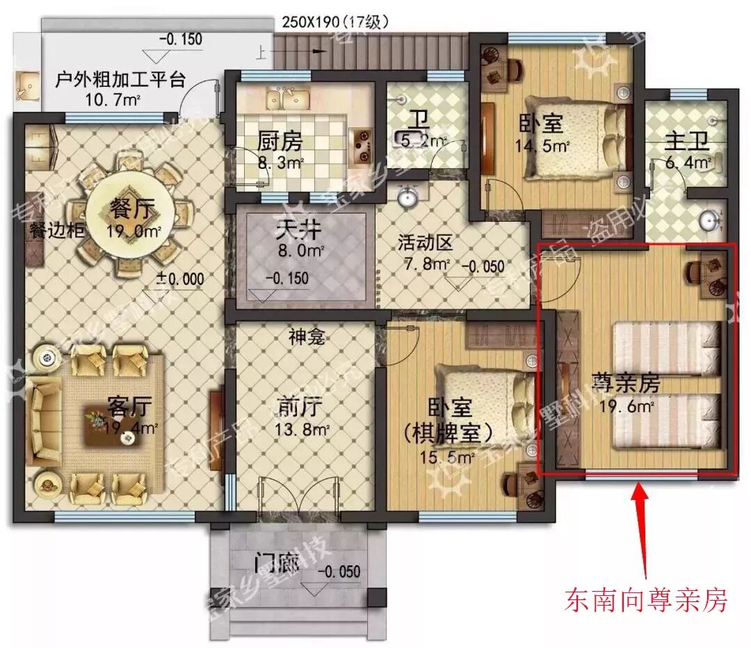 而在乡村,还有堂屋的功能,是举行家庭祭祀和重大礼仪的场所,所以面积规划都不小,有些甚至能做到与厅同宽。